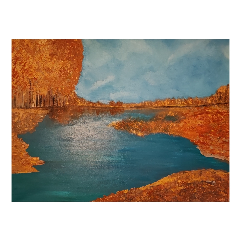 Tunnisteet: Akryylimaalaus, kuvataide, sekatekniikka, syksy, ruska, luonto, puut, maalaus