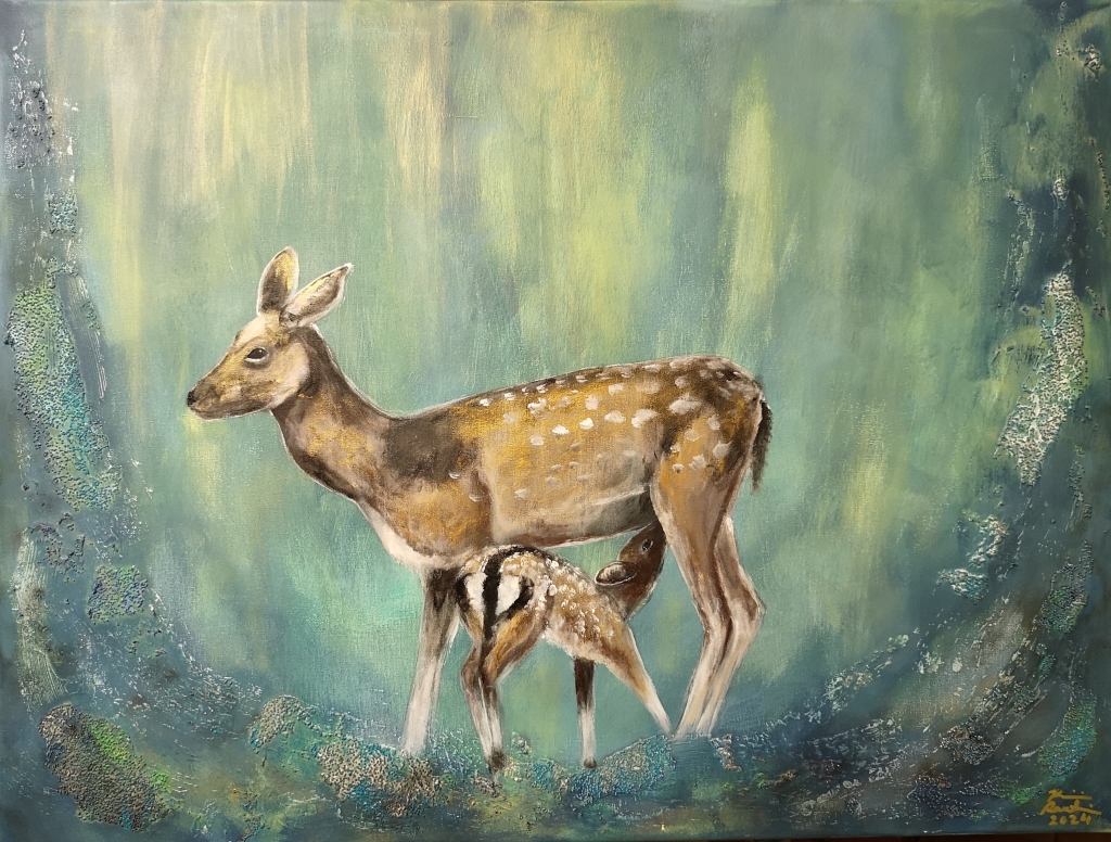 Kuvaus: Peurat, kaunis ja herkkä teos canvasille.