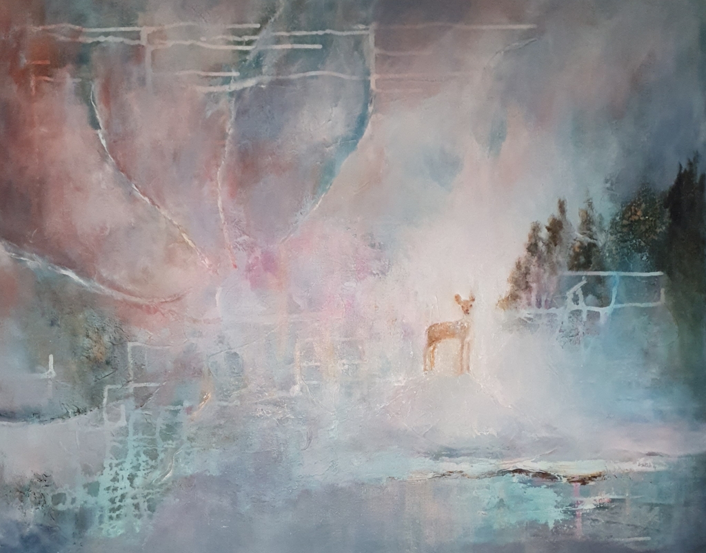 Kuvaus: Abstrakti akryylimaalaus, sekatekniikka, struktuuri, kaurismaalaus