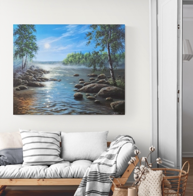 Kuvaus: Akryylimaaleilla canvakselle maalattu teos