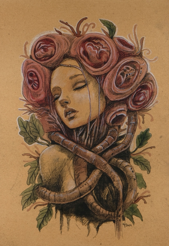 Kuvaus: inktense maalaus/lyijykynäpiirros kovalevylle