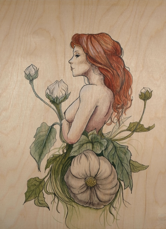 Kuvaus: Inktense vesivärimaalaus koivuvanerille