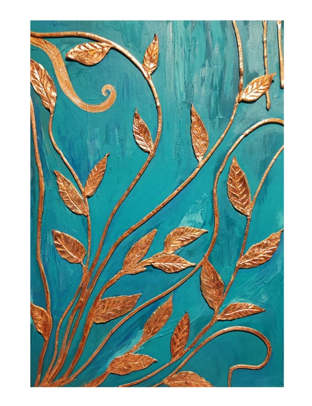 Kuvaus: Akryylimaalaus, sekatekniikka, kohokuvio, kulta, turkoosi, art, taide, taulu, sisustustaulu, design, Finnish design, koti, sisustus, kodin sisustus, turkoosi, luonto, suomalainen taide