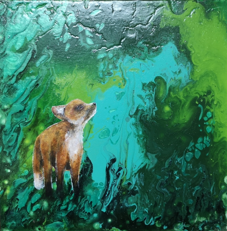 Kuvaus: Kettu onnellisena, kaunis ja herkkä teos. Canvas, jossa myös reunat ovat maalattu ja teos on valmis ripustettavaksi seinälle.