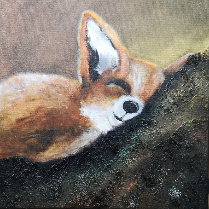 Kuvaus: Kettu levollisena, kaunis ja herkkä teos. Canvas, struktuuria, reunat maalattu, valmis ripustettavaksi seinälle.