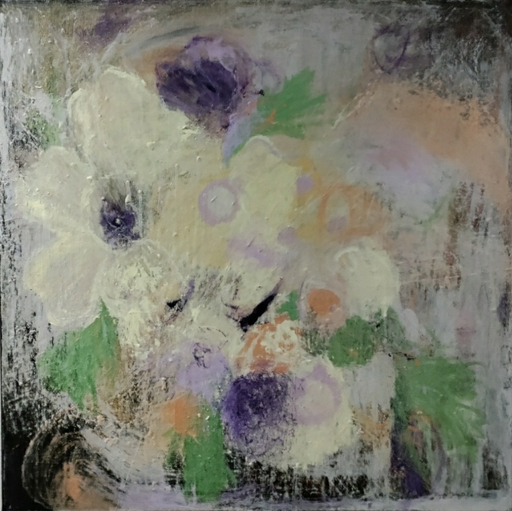Kuvaus: Akryylimaalaus kukka aiheesta. Signeeraus edessä ja takana. Ripustus valmis.