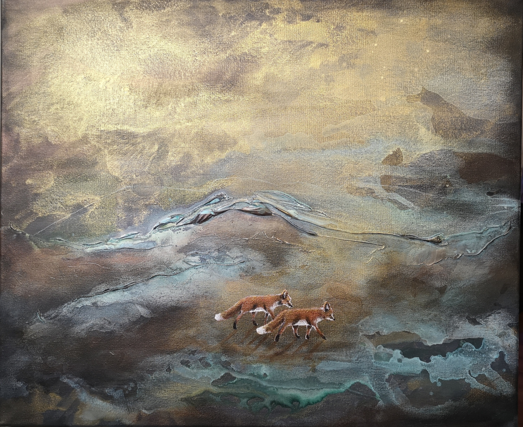 Kuvaus: Ketut, kaunis ja herkkä teos canvasille. Struktuuria ja myös reunat maalattu.