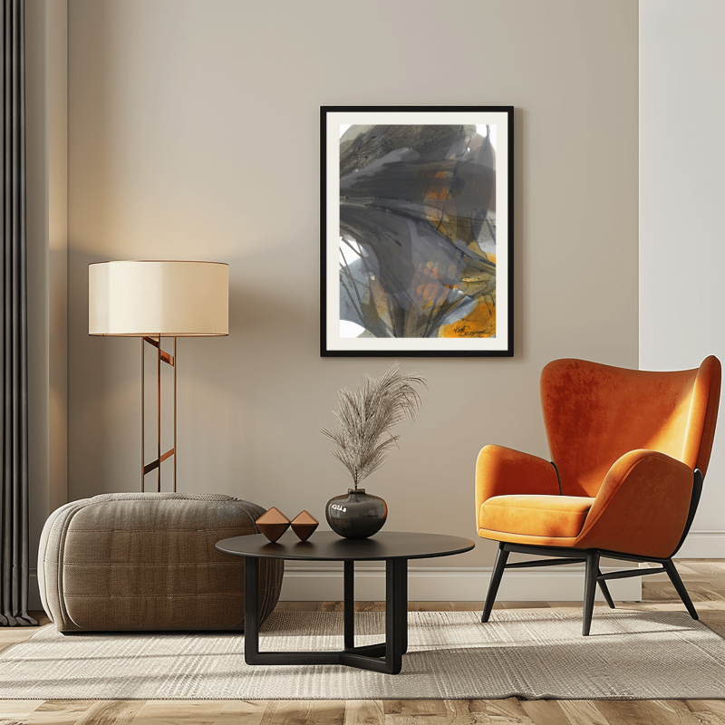 Kuvaus: Kosketus #8 tutkii taktillista energiaa ja orgaanista virtausta, yhdistäen fluidin abstraktion ja kasviaiheiset elementit. Syvän mustan ja säteilevän keltaisen voimakas kontrasti luo liikettä ja syvyyttä. Kehystetty ja valmis ripustettavaksi, se tuo eleganssia ja eloisuutta mihin tahansa tilaan. Kehystetty, valmis ripustettavaksi. Suojattu lakalla värien säilyvyyden takaamiseksi. On ollut esillä näyttelyssä "Kosketus", Brinkhallin kartano, Turku (2024). Nouto Turusta tai postitus. Kysy lisää kuvia tarvittaessa.