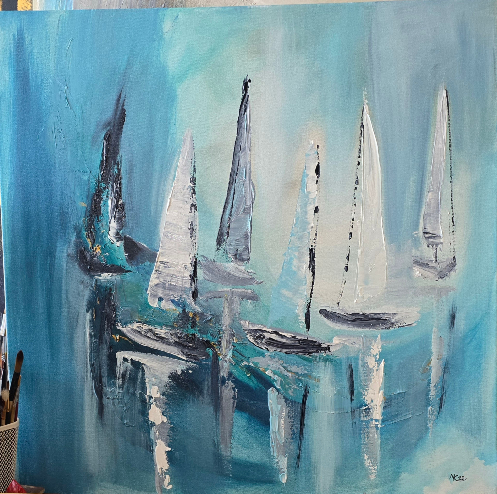Kuvaus: Abstrakti teos purjeveneistä