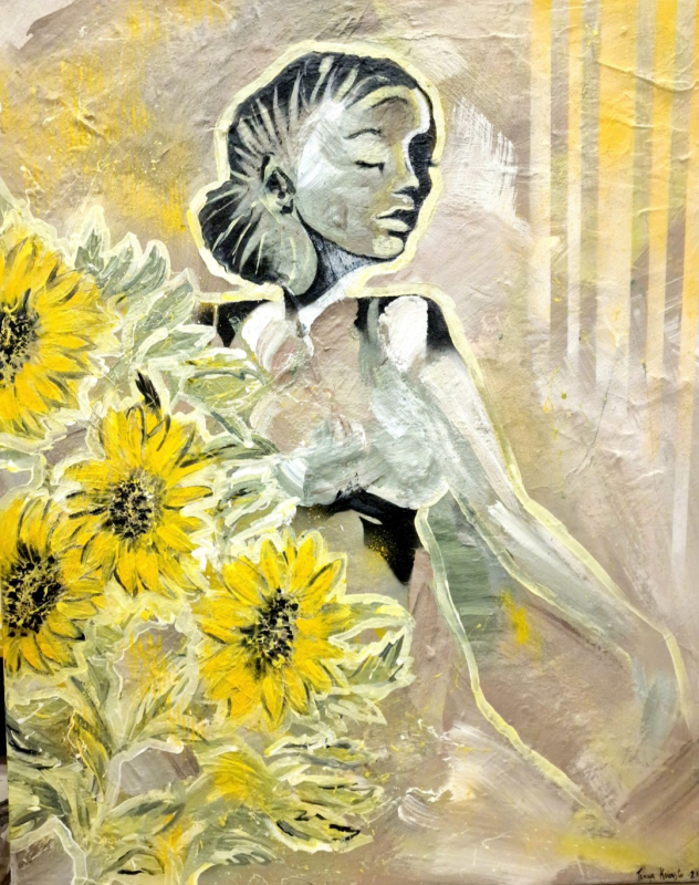 Kuvaus: Akryyleilla tehty sekatekniikalla canvaspohjalle. Ripustusvalmis.