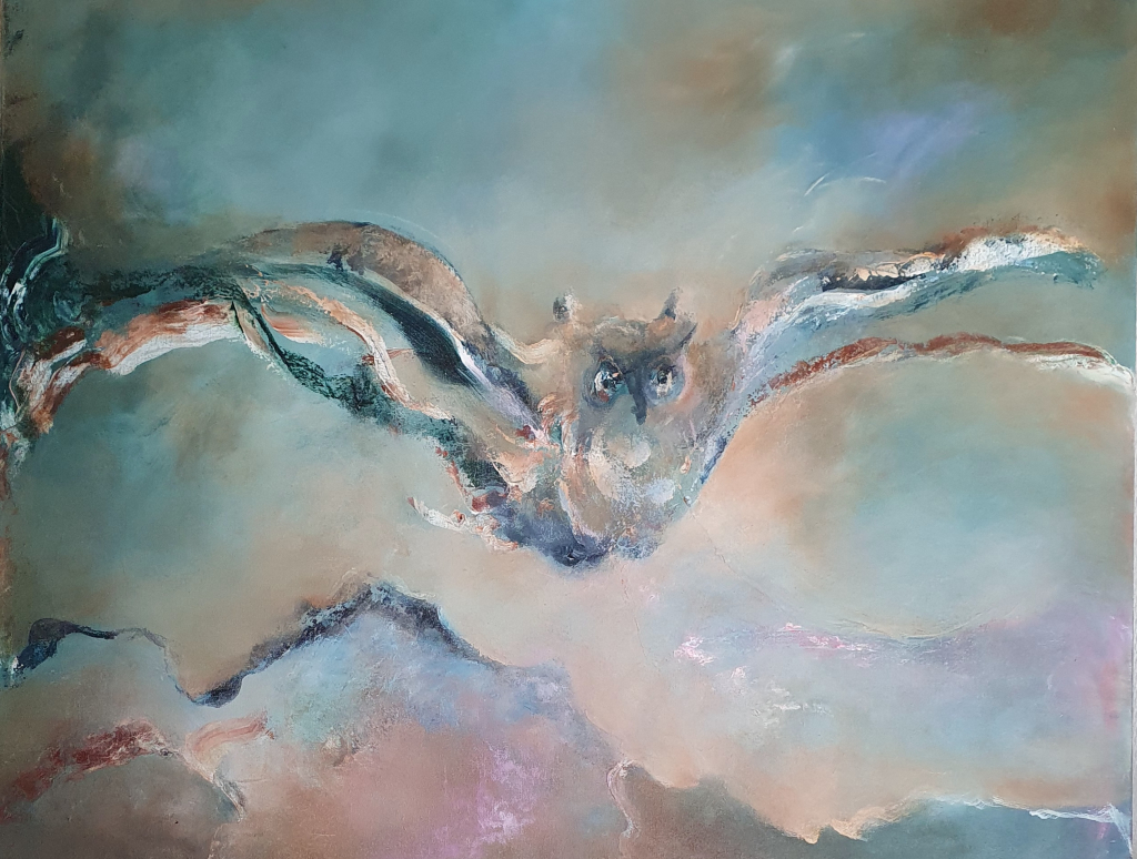 Kuvaus: Abstrakti akryylimaalaus,pöllömaalaus, mystinen