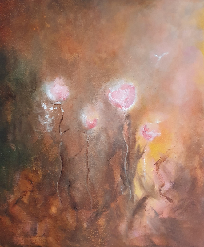 Kuvaus: Abstrakti akryylimaalaus, kukkamaalaus