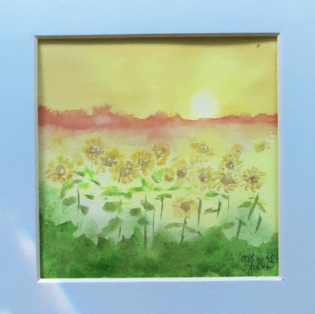 Kuvaus: akvarelli, paspatuuri, kuvan mitat 8,5x8,5 cm