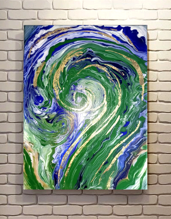 Kuvaus: Kullanhohtoinen akryylimaalaus kankaalla, suojalakka. Ilmainen toimitus.