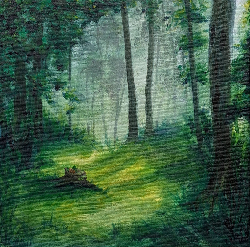 Kuvaus: "Kanto ja elämä" näyttää hiljaisen metsämaiseman, jossa kuolema ja uusi elämä ovat olemassa vierekkäin. Etualalla vanha kanto lepää metsän maassa. Sieniä ja pieniä kasveja kasvaa kannosta. Kuollut puu on muuttunut uuden elämän pohjaksi. Rauhallinen metsä ympäröi tätä luonnon kiertokulkua. Luonnossa kuolema ei ole loppu, vaan muutos. Se, mikä kuolee, ravitsee sitä, mikä tulee seuraavaksi. Maalaus kutsuu meitä näkemään kuoleman osana elämän jatkuvaa virtaa, jotta voimme hyväksyä rauhallisesti.