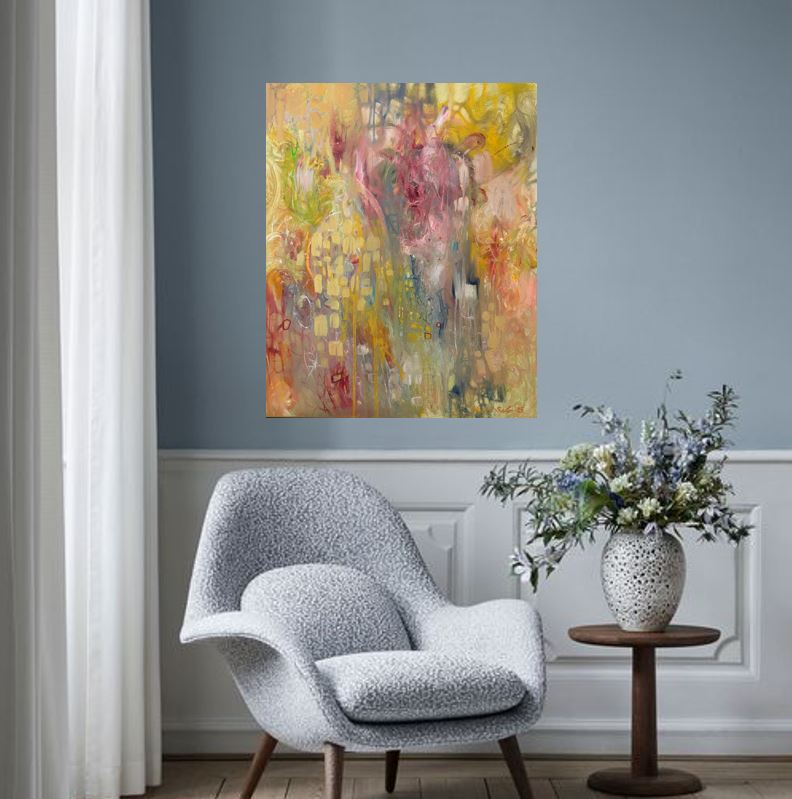 Kuvaus: Abstrakti teos. Hetken onni. Ei ihan tavallinen maalaus. Monimutkainen ja yksinkertainen. Reunat maalattu, ripustusvalmis. Uniikki sisustustaulu.