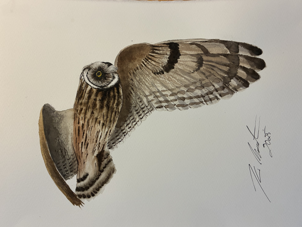 Kuvaus: Lintuaiheinen akvarelli