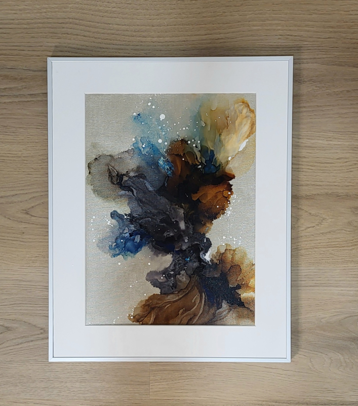 Kuvaus: Sekatekniikkateos kankaalle, jossa hohtava sävypohja. Maalaus sopii kehystettynä 40x50 kokoiseen kehykseen paspartuurin kanssa. Paspartuuri ja kehykset erikseen ostettavissa. Teos sopii myös vaakatasoon. Nouto Oulusta tai lisäksi lähetyskulut 10€.