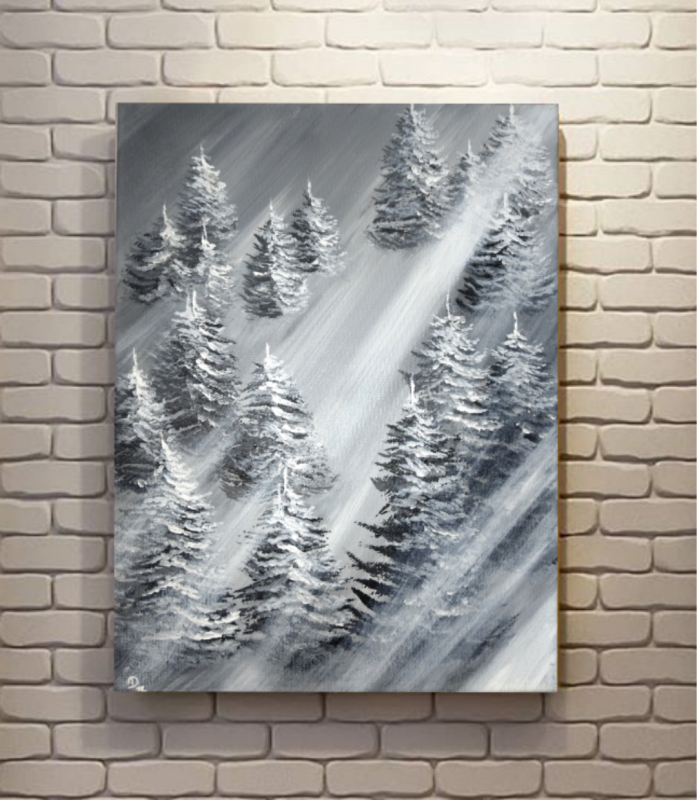 Kuvaus: Tunnelmallinen akryylimaalaus kankaalla, suojalakka
