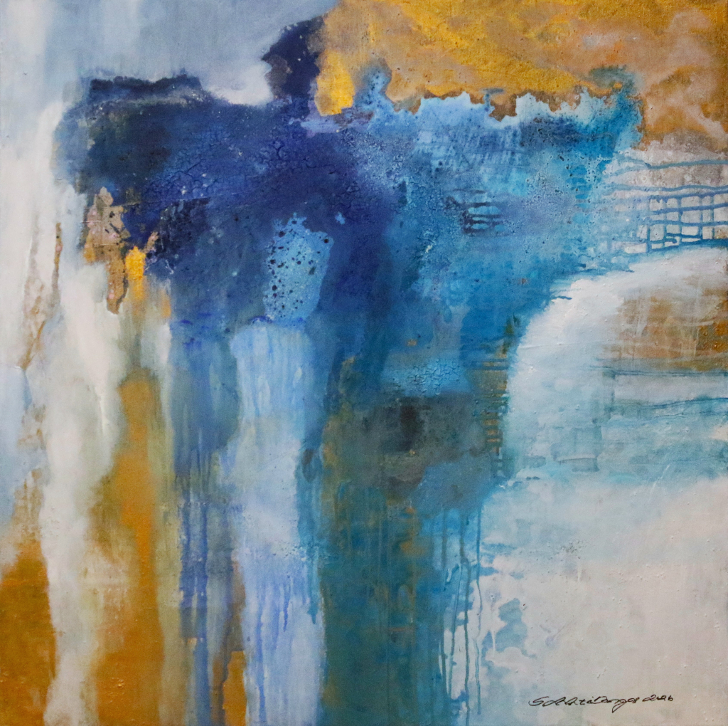 Kuvaus: Abstrakti akryylimaalaus kankaalle. Ripustusvalmis