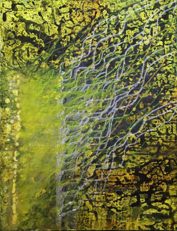 Kuvaus: abstrakti akryylimaalaus kankaalle.