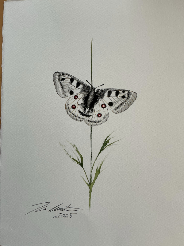 Kuvaus: Akvarelli apollosta, maalattu laadukkaalle paperille ja ammattilaisvärein