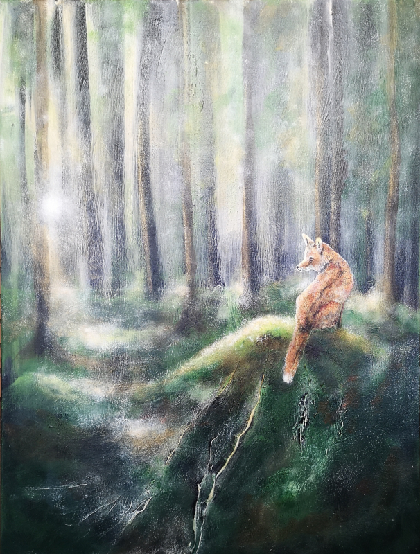 Kuvaus: Kettu, kaunis ja herkkä teos. Canvas, struktuuria, valmis ripustettavaksi seinälle. Katso www.kirsirautiainen.art