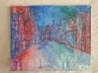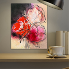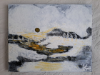 2025Akryylimaaleilla canvakselle maalattu teos, reunat siistitty mustalla.