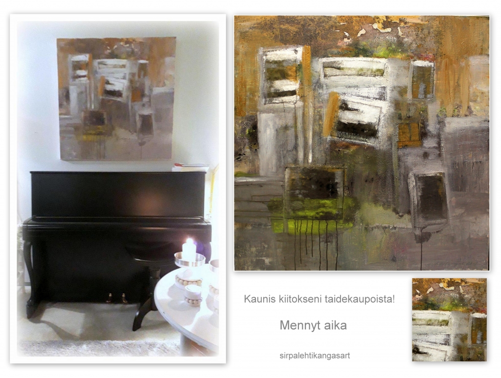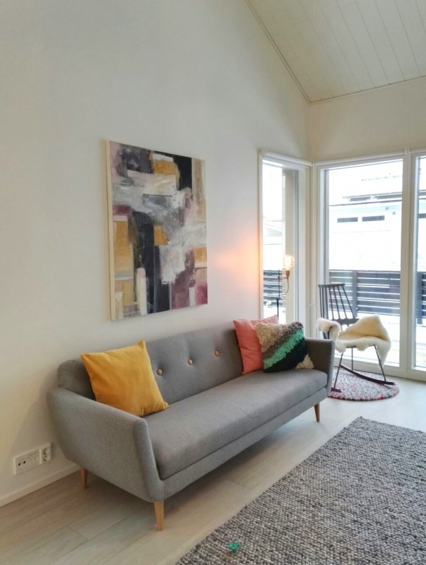 Uusi vuosi on ilo aloittaa näillä taideasiakkaani lähettämillä kuvilla. Kaunis kiitokseni taidekaupoista ja kauniista viestistä, jonka sain. Maalaukseni ”Jäätuulen viesti ” pääsi tyylikkääseen miljööseen. ”Kertakaikkisen upea maalaus ja sopii meille hienosti… täytyy vielä todeta, että meille nappivalinta. Teemakin sopii hyvin, kun mereltä puhaltaa usein aika navakasti varsinkin näin talvella.”