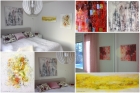 Maalaukset Kutsuu, Auringon kehrä, Tuulen kukat ja Pilke pääsivät kodikkaaseen miljööseen. Kokonaisuus on rauhallisen harmoninen