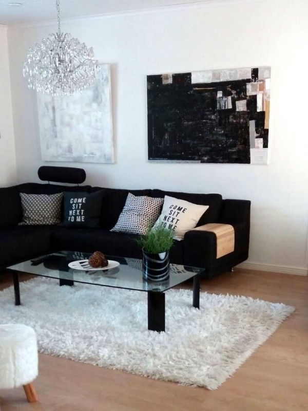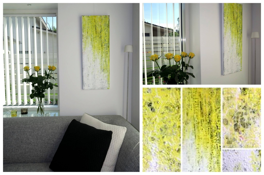 Maalaus "Keltaisen aika" on päässyt tyylikkääseen, valoisaan ja kauniiseen kotiin. Sille on löytynyt juuri sopiva paikka tästä kodista.