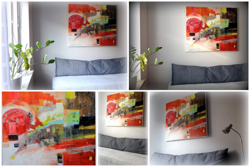 Maalaukset "Aurinkotuuli, "Kesän kaipuu" ja "Kohtaaminen" pääsivät persoonalliseen, kauniiseen ja ihanaan kotiin.