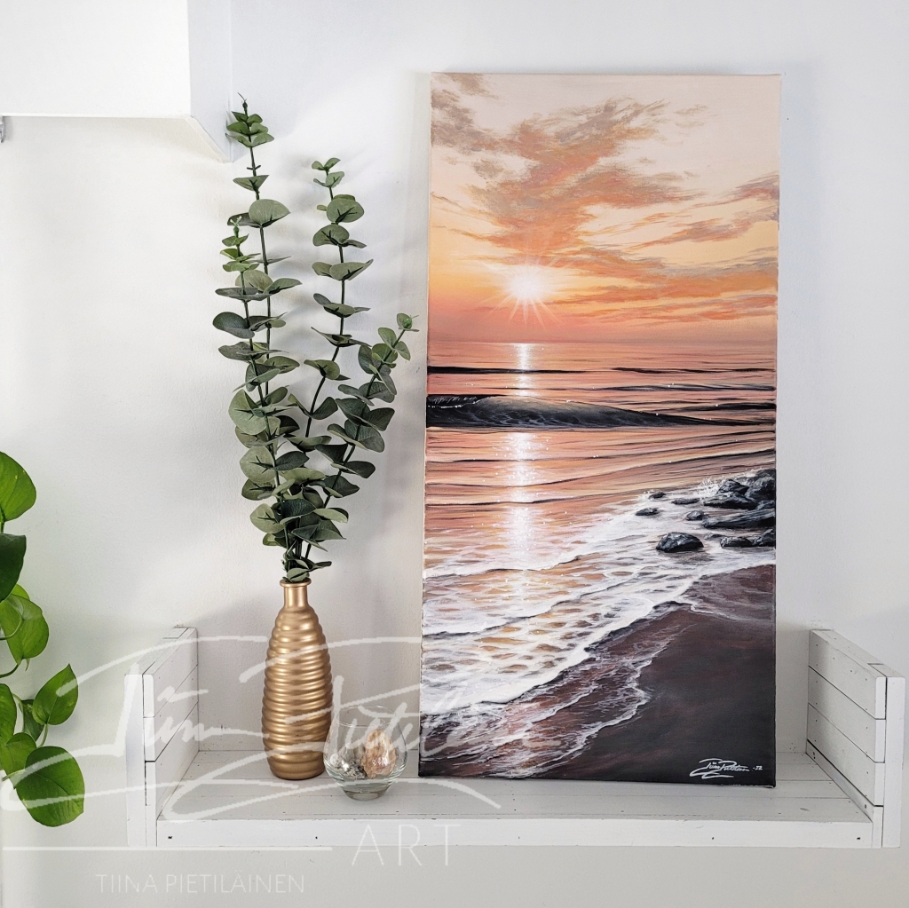Elämä on kiireistä ja täynnä ärsykkeitä, mutta ympärillämme on kauneutta, joka voi pysäyttää meidät ja muistuttaa tärkeimmistä asioista: rauhasta, onnellisuudesta ja hetkessä elämisestä. Jokainen taideteokseni on suunniteltu tuomaan tiloihin ja koteihin juuri tätä tunnelmaa – iloa, tasapainoa ja luonnon lumoa.
