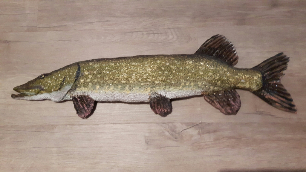 Kuvaus: Veistos hiekka/hartsi seos. Maalattu öljymaalilla. Takana koukut.