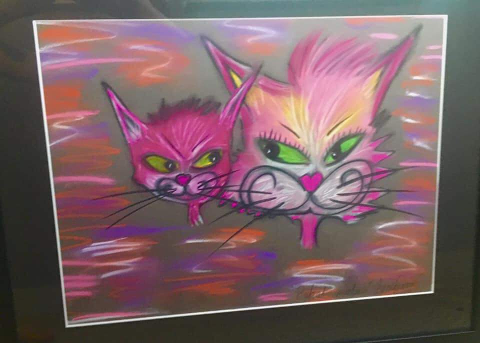 Kuvaus: Naivistit kissat, värikäs,pastelli, hauskat