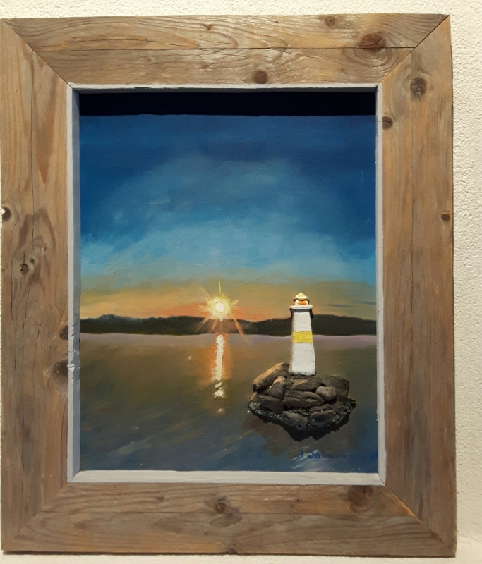 Kuvaus: Pian aurinko katoaisi kokonaan, ja silloin majakan pieni lyhty syttyisi. Se ei kilpaillut auringon kanssa, mutta pimeässä se olisi kaikki, mitä joku kaukainen kulkija tarvitsi löytääkseen kotiin. Luodolla vallitsi täydellinen rauha; vain veden hiljainen liplatus kivien välissä muistutti siitä, että meri oli elossa.