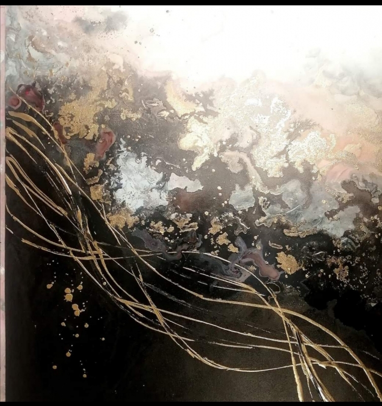 Kuvaus: Akryyleilla tehty sekatekniikalla canvaspohjalle. Ripustusvalmis. Rouhea pinta.