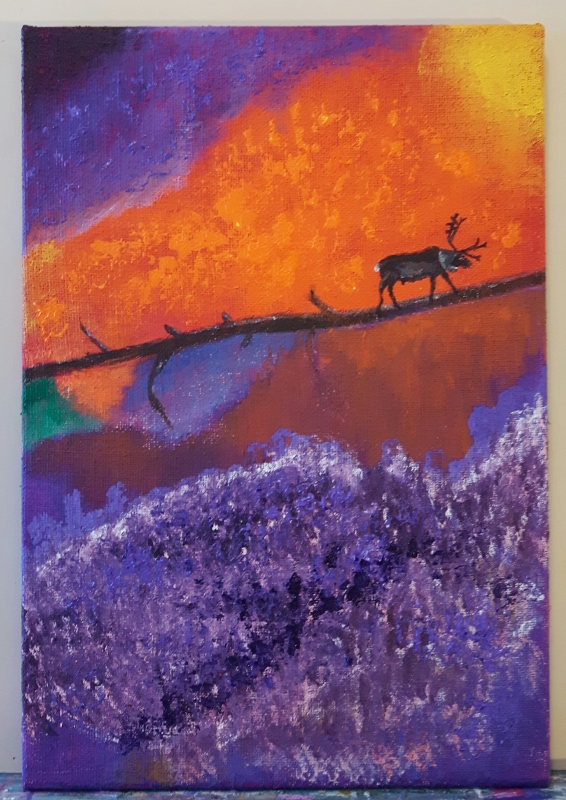 Kuvaus: "Poropolku-missä tuli kohtaa jään. Hetki tunturissa, kun maailma pysähtyy vetämään henkeä ennen pimeää"