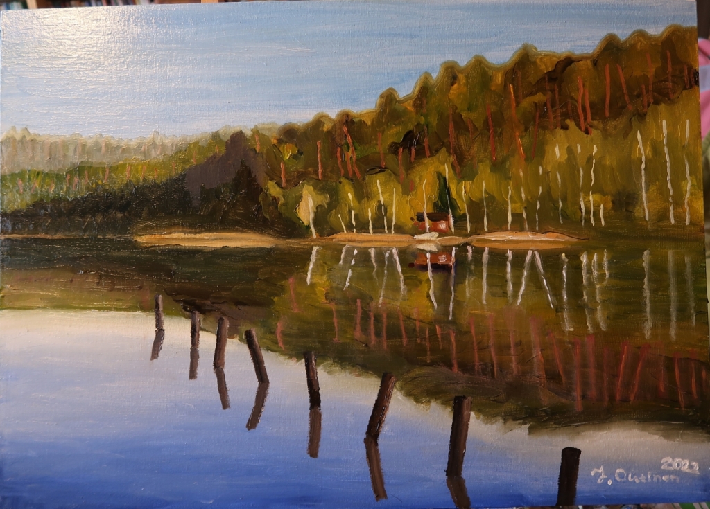 Kuvaus: maalattu kangaspahvipohjalle, ei kehystä