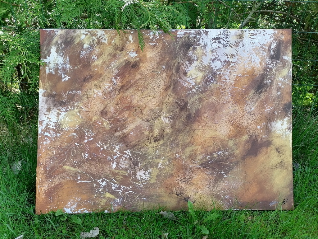 Kuvaus: Teos syntyi pikkuhiljaa multaan sormia upottaessa ja uusia taimia hoivatessa. Luontoon kietoutuen ja rauhan syleilessä kireitä hermoja. Kun ei tiedä, kun ei jaksa, vastaus ja rauha löytyy aina luonnosta.