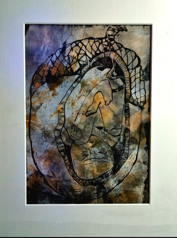 Kuvaus: Taidegrafiikka. Sekatekniikka. Mukana paspis.