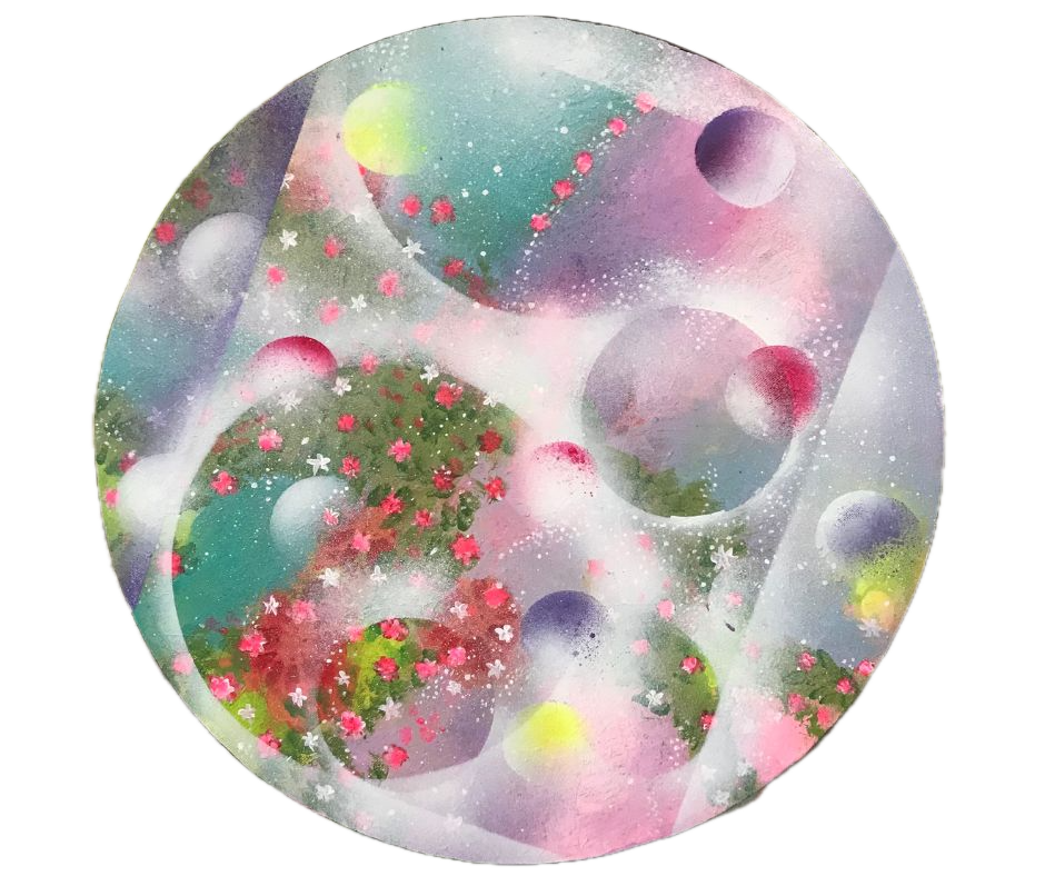 Kuvaus: Pyöreälle canvaspohjalle maalattu teos