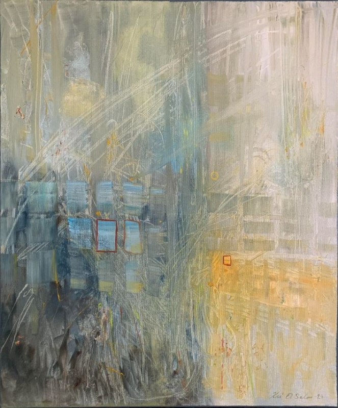 Kuvaus: Abstrakti teos. Vihreä on uusi valkoinen - kevätaurinkoisissa tunnelmissa. Reunat maalattu. Ripustusvalmis. Uniikki öljyväriteos.