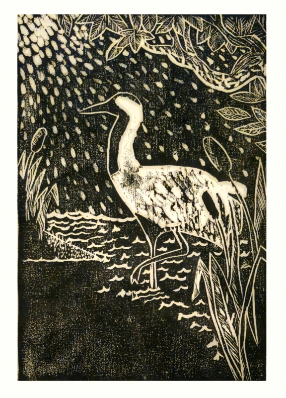 Kuvaus: Puupiirros -tekniikalla työstetty taidegrafiikan vedos paperille. Koko n. A4