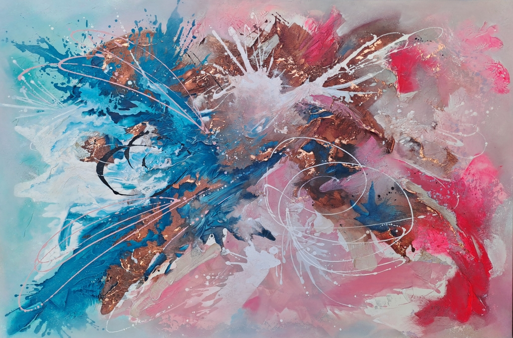 Kuvaus: Akryylimaalaus, lehtimetalli,vahva struktuuri pohjalla
