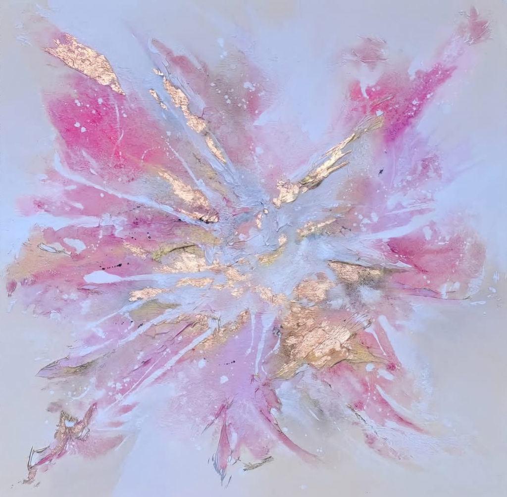 Kuvaus: Akryyli,lehtipronssi,struktuuri pohjalla