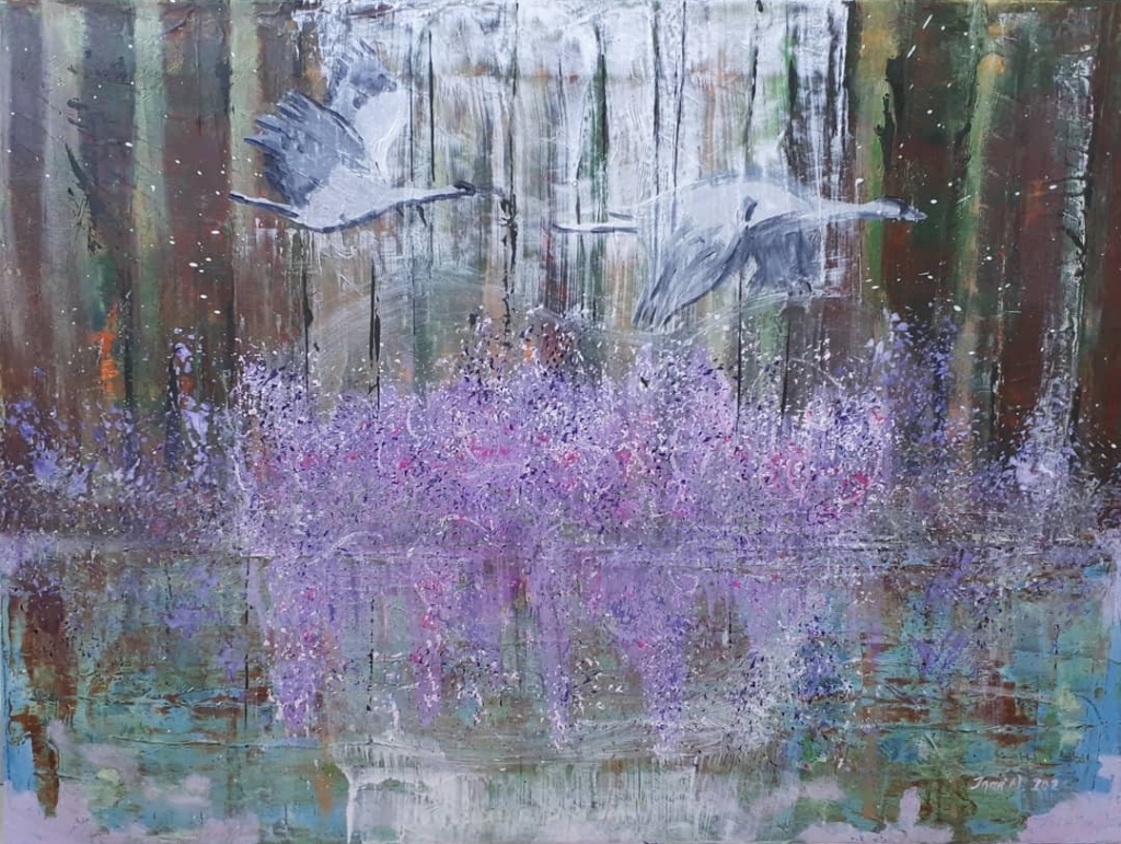 Maalaukseni kuvaavat usein metsäluontoa. Rakastan kulkea metsissä, alan hymyillä heti kun saavun metsän reunaan.
