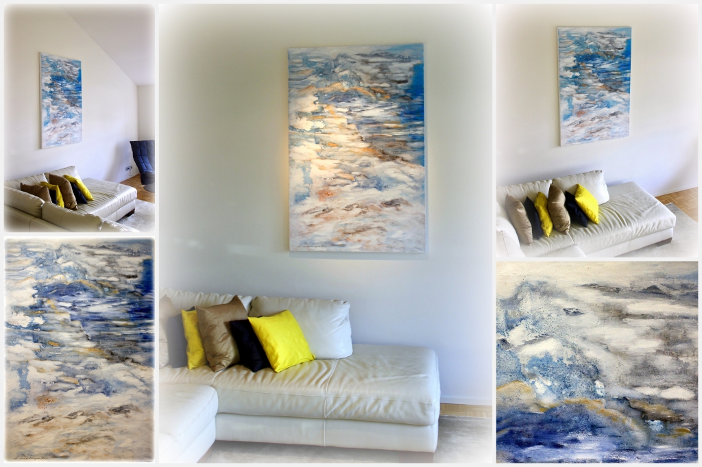 Uusi vuosi on ilo aloittaa näillä taideasiakkaani lähettämillä kuvilla. Kaunis kiitokseni taidekaupoista ja kauniista viestistä, jonka sain. Maalaukseni ”Jäätuulen viesti ” pääsi tyylikkääseen miljööseen. ”Kertakaikkisen upea maalaus ja sopii meille hienosti… täytyy vielä todeta, että meille nappivalinta. Teemakin sopii hyvin, kun mereltä puhaltaa usein aika navakasti varsinkin näin talvella.”