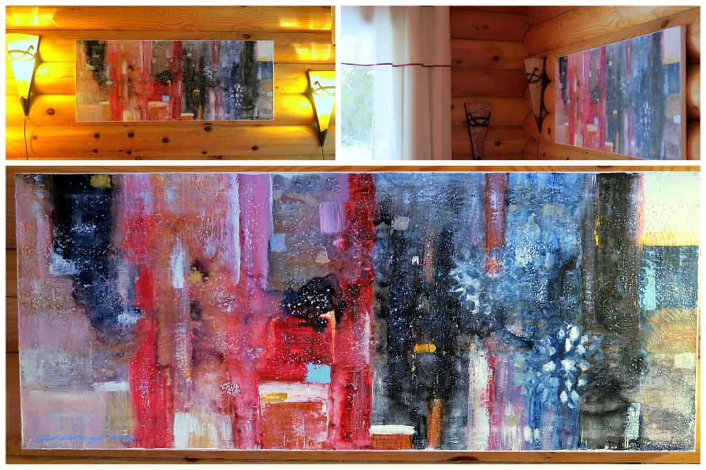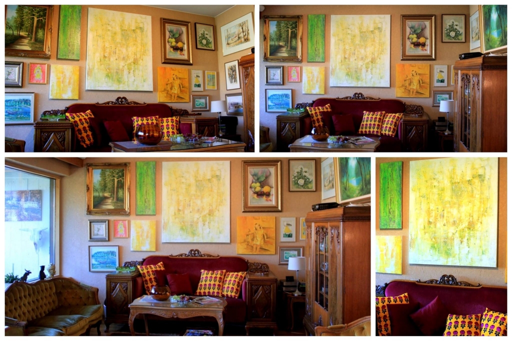 Maalaukset "Aurinkotuuli, "Kesän kaipuu" ja "Kohtaaminen" pääsivät persoonalliseen, kauniiseen ja ihanaan kotiin.