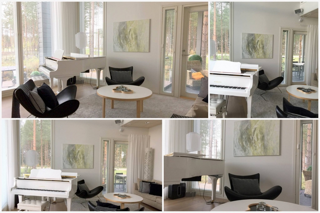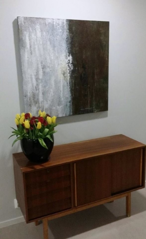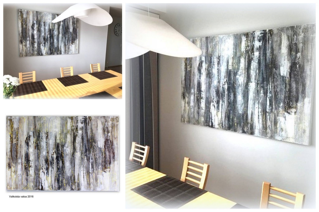 Maalausten "Usva" ja "Lokakuun kutsu 1-3" ovat päässeet kauniiseen kotiin. "Olen erittäin tyytyväinen ostokseeni ja teoksia katsellessa mieli lepää ihanassa luonnon tunnelmassa. Kiitos!"